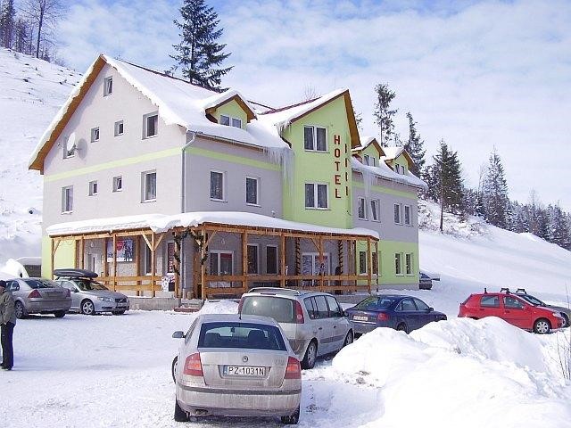 Wyposażony w pokoje 2,3,4os. z łazienkami, restaurację/bar , saunę, jacuzzi, narciarnię oraz parking GRATIS